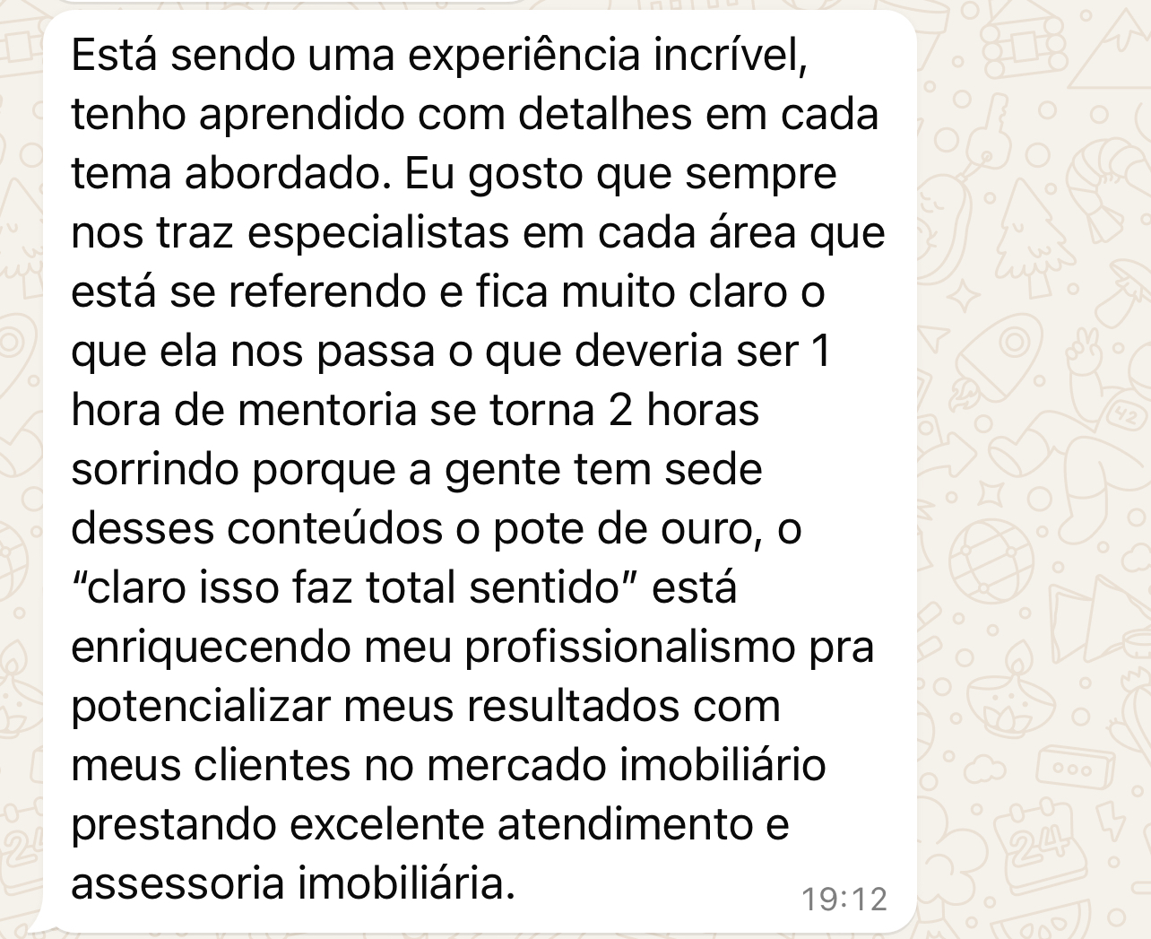 A Mentoria Negociação Avançada é sua chave para dominar o mercado imobiliário. Desenvolvida para corretores e empresários que desejam ir além, essa mentoria oferece técnicas práticas e estratégias poderosas para transformar suas negociações em resultados excepcionais. Com 8 encontros de Hotseat com Ana Ferraz, 8 encontros com convidados especiais e acesso à área de membros, você aprenderá a influenciar, persuadir e fechar negócios de alto valor com confiança inabalável.